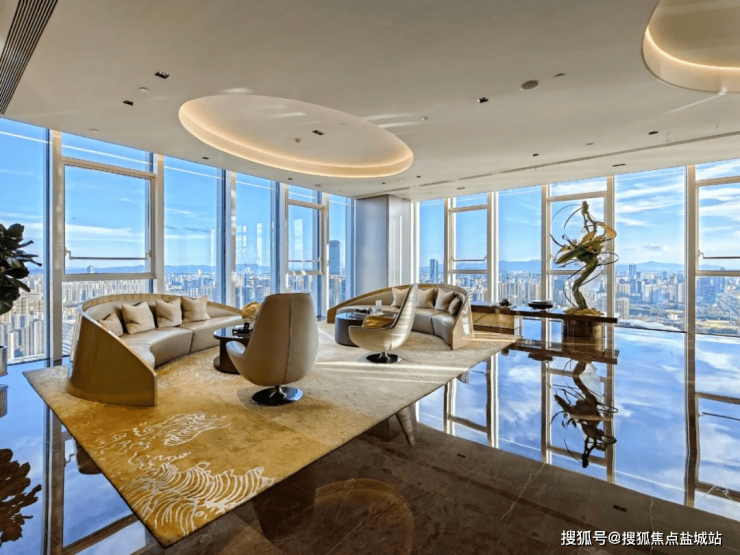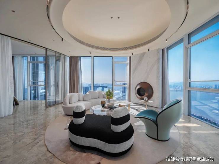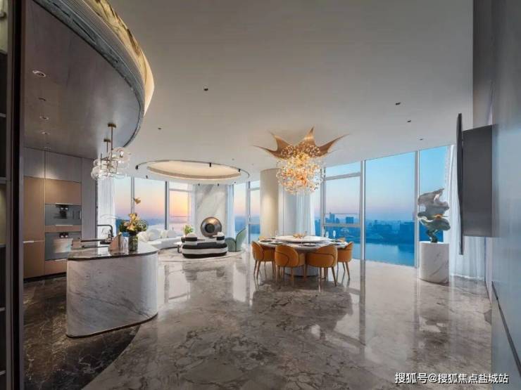 “全方位观景+全顶配奢装”的设计,让潮鸿既可以作为彰显成就的终极居所,也能成为商务会客的企业会所,满足塔尖客群的多元需求。