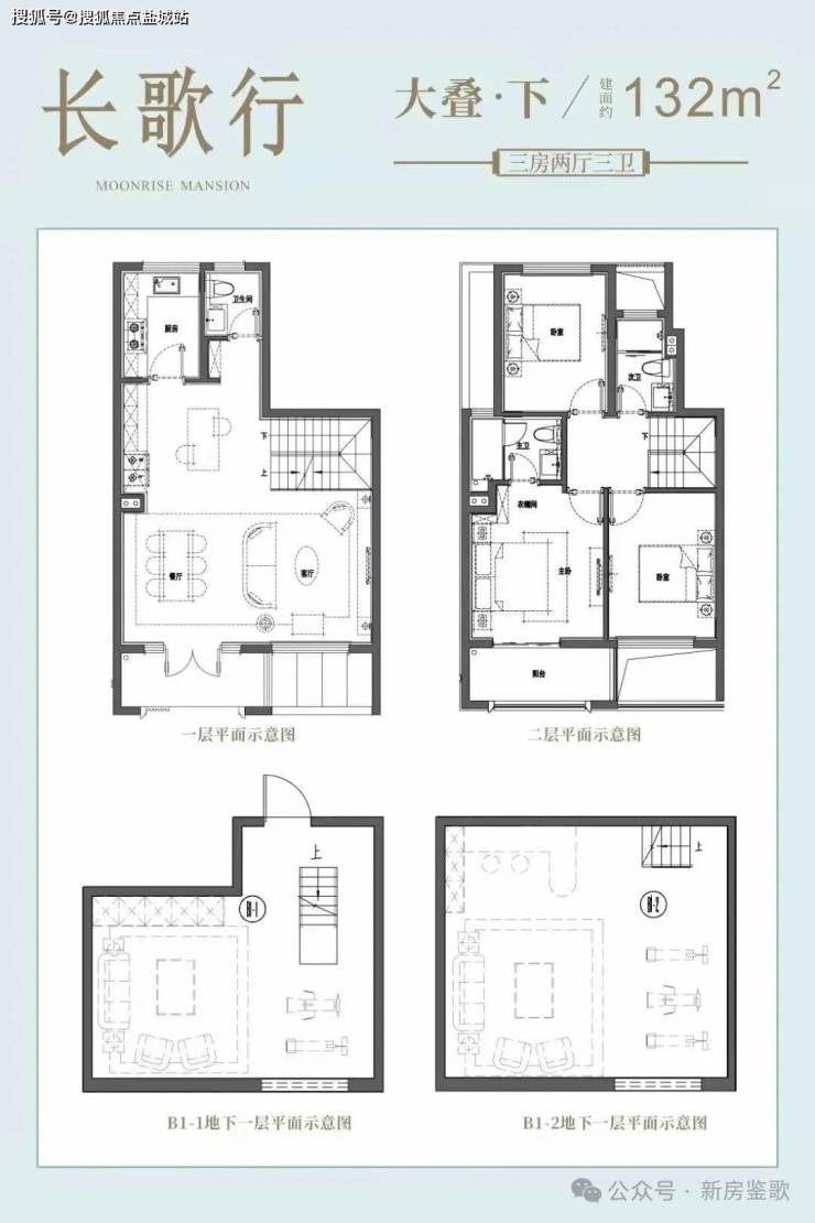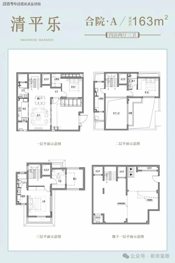 合院(毛坯):附带40-100㎡花园&地下室(层高5.3m),三楼有近15㎡露台。