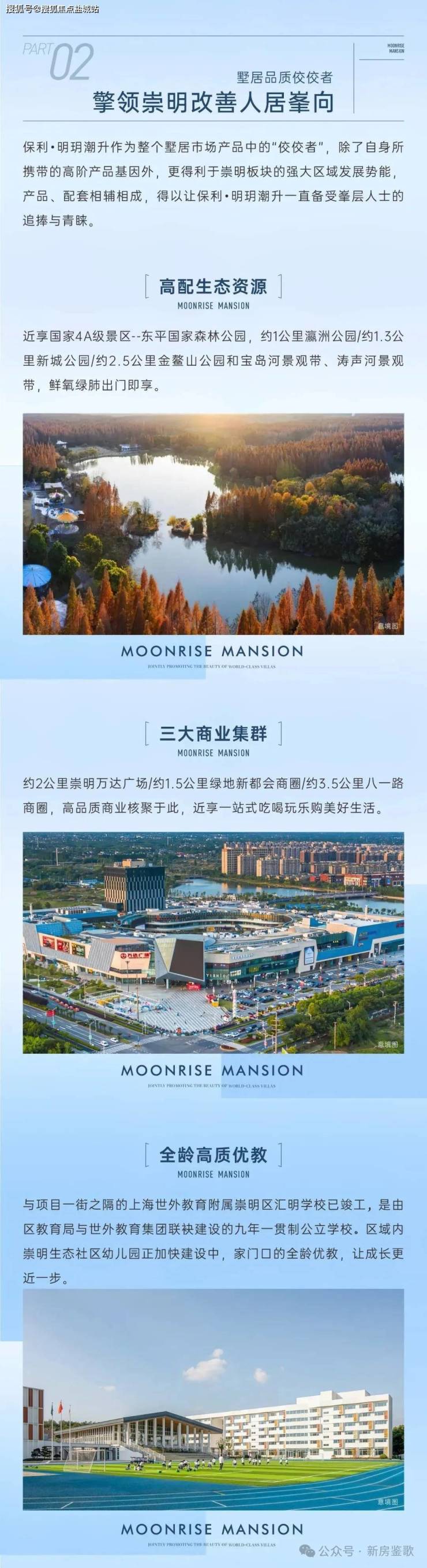 【生态环绕】新城公园、金鳌山公园、瀛洲公园三大城市公园环绕,南临长江,北临崇明生态水系。