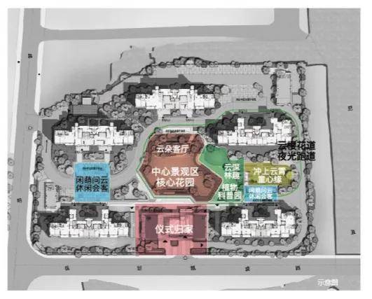 立三面环河之境,著述“一环·七境”园林,涵盖约266m健康跑道、仪式归家、云熙小径、中央景观花园、云朵客厅、植物科普花园、云霄儿童乐园、休闲场地多重造趣空间,致意静谧心灵。
