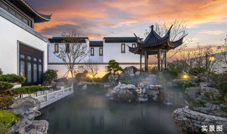一脉相承蓝城经典中式合院营造经验,项目汲取了苏派、徽派中式建筑精华,凝聚千年东方文化,白墙、青瓦、飞檐、花窗以及亭廊和谐组合,构成“立体的水墨画,凝固的古诗词”,再现千载东方人居美学。