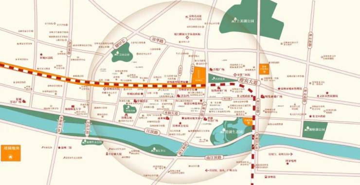 项目两公里直线距离范围内,印象汇、天虹商场、大润发等多个商圈环伺,更有超 50 万方的城市综合体“吾悦广场”,帷幄城芯繁华生活。