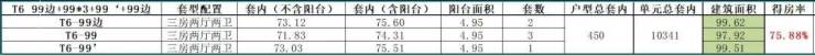 项目高层产品均为100㎡左右3房户型,一梯6户: