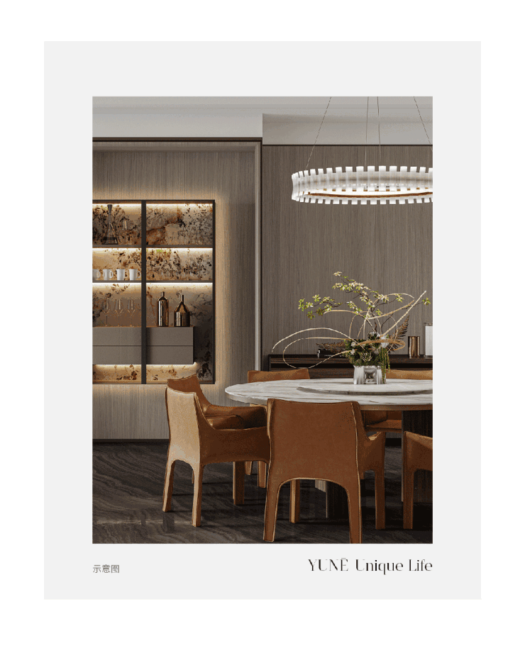 景观设计更向往自然纯粹的优雅和从容闲适的内心,营造七大主题景观带。室内设计,秉承摩登东方的理念,设计以人、生活为出发点,从空间本体和情感层面都回归生活,270度环幕采光,开放式会客厅设计,兼具尺度感与功能性。