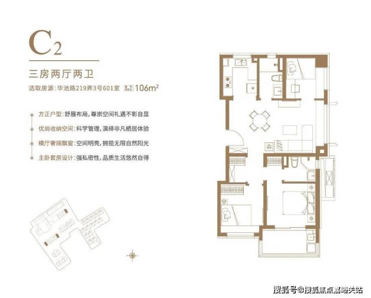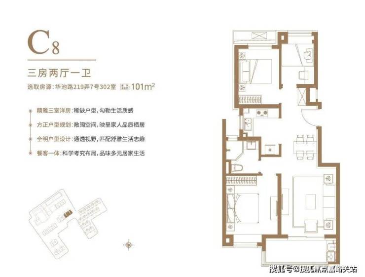 户型设计灵动,项目建面约97-106㎡臻谧洋房,清一色100平左右户型,均价约10.4万/平,无需积分,可直接认购。