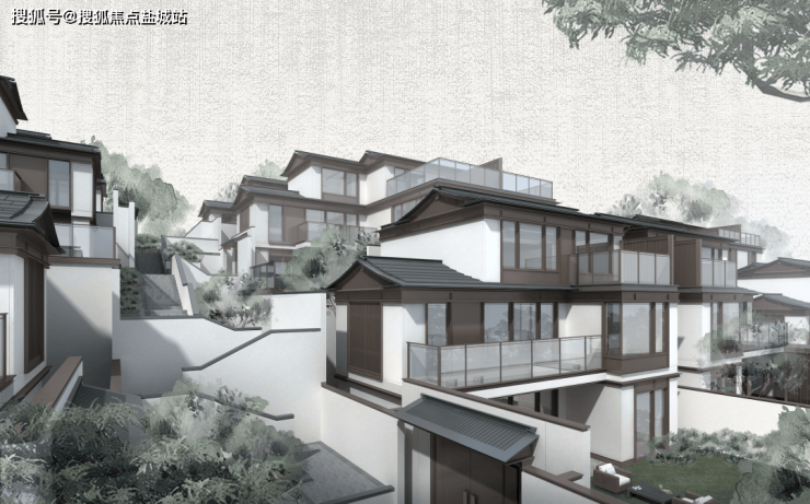其次,效果图上看,大玻璃立面、高窗墙比,以及凌空蹈虚于山林间的现代中式建筑,又有几分神似“钱塘江南岸版的郡安里”。