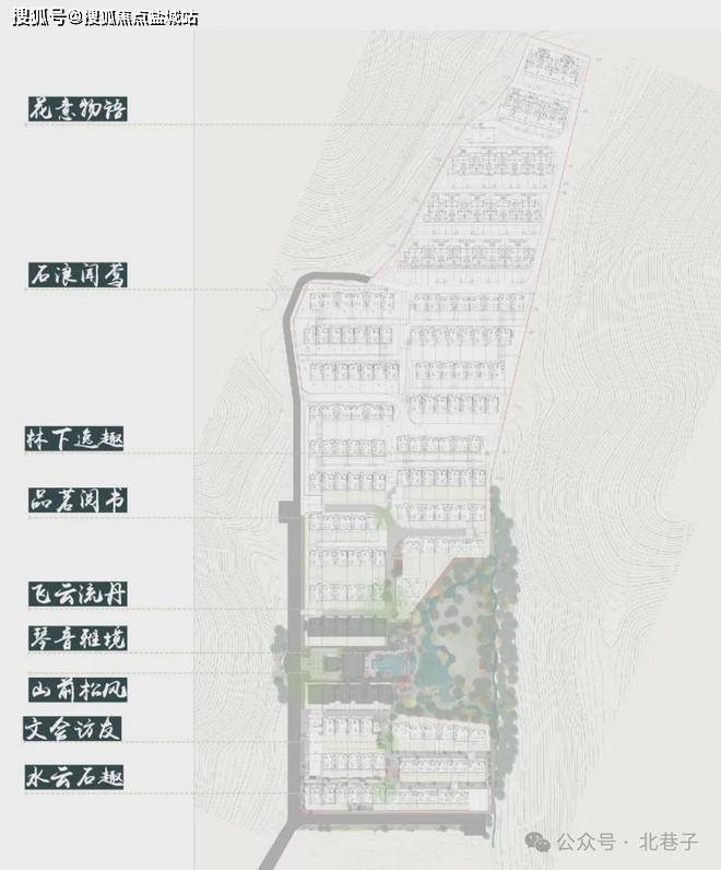 “两轴”:青荫路曲轴,叠水迎风轴连着沉浸式归家巷道,塑造隐奢归家礼序;