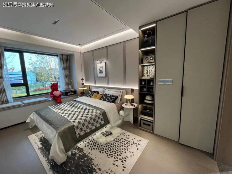 主卧套房设计,所有卧室及2个卫生间均带有飘窗,南向窗户都有中置百叶三玻两腔玻璃。