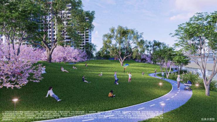 以项目为圆心,2公里内更串联起河泾公园、文心公园、青浦首个体育公园及重固农民公园,居民不用跑远路,就能亲近自然。