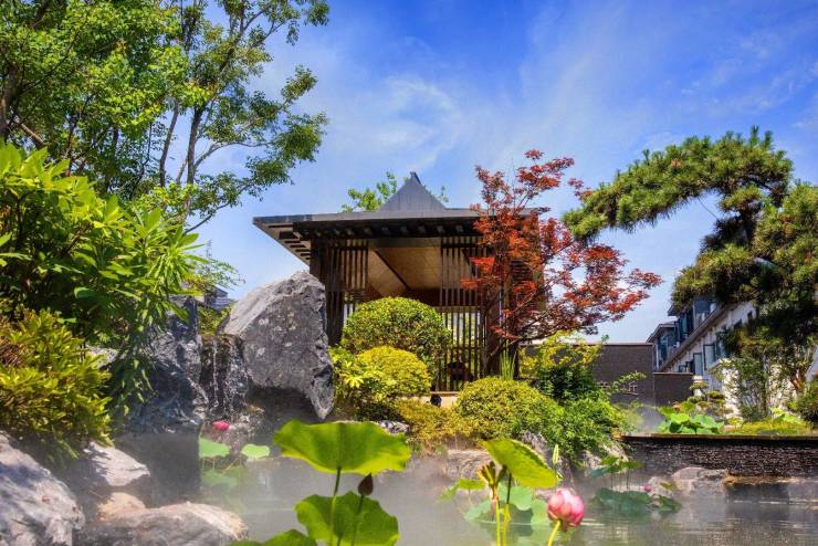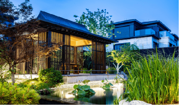 一园知江南,一境见东方。因循土地低密特性,师法东方造园理念,造化“一轴、两带、三心”藏纳万象;合璧内外,连通约320M沿河景观带,将中式园林美学与山水生活方式融合,重构当代名仕栖居场景。