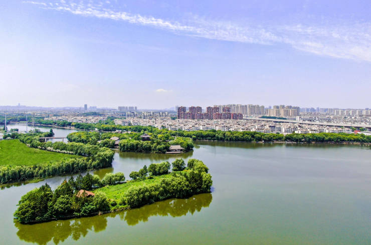 三面环水,约320米江岸线萦绕,恰如一抹碧蓝融入园区景观之中,描绘出“滨水宜居生活样本”的未来美好生活场景。