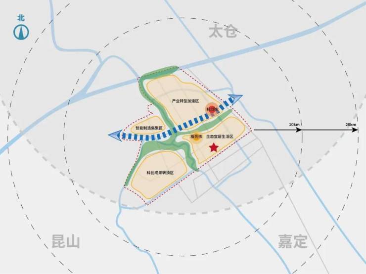 2021年《太仓市科技产业园控制性详细规划修编(2021 版)》中,明确了区域以临沪科创新高地、产业转型新样板作为发展定位。“一轴·双核·两带·四组团”的功能结构,囊括产业发展、生态景观、宜居生活、社区配套等多项综合规划,将完成区域的华丽蜕变,重新代言太仓高光时刻。