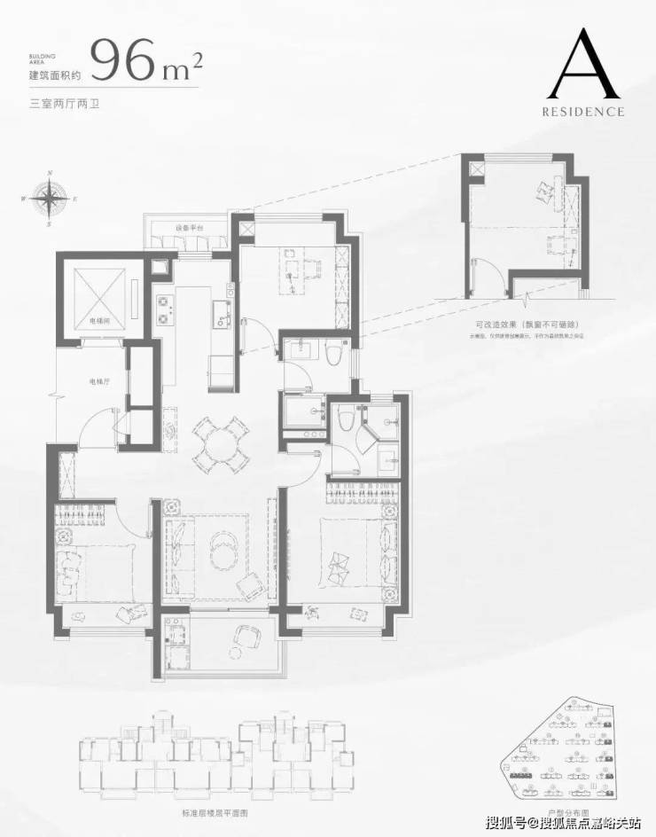 建筑面积约96㎡3房 经典飞机户型 精致进阶