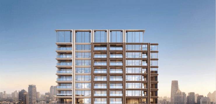 建筑整体采用经典三段式比例,融合中西建筑语汇,以现代极简风格为内核,通过自然咖与鎏金色的视觉碰撞,既延续传统,又彰显时尚。更值得一提的是,璞元将传承千年的东方陶艺进行当代转译,结合邬达克建筑线条,使陶制腰线不仅呼应上海向上的城市精神,也成为镶嵌于立面的文化符号。