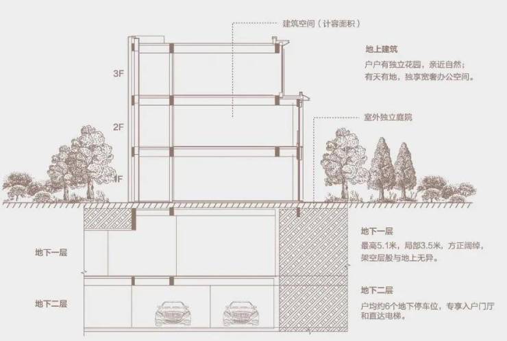 【层 高】地上约3.8-4m,地下至高约5.1m