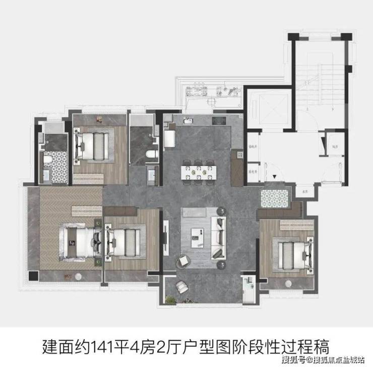 建面约127㎡直接进阶4房,功能性拉满,适配当下越来越多的二胎或三代同堂家庭。