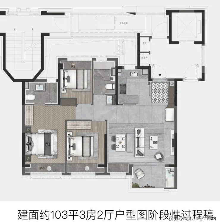 ②建面约103㎡3房户型: