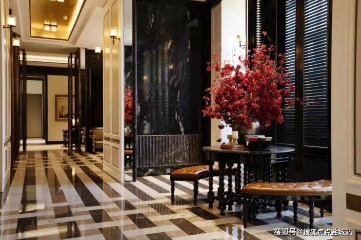 值得一提的还有:为了满足不同年龄段业主的需求,项目在多楼栋设有架空层,涵盖健身、阅读、娱乐等功能,并且将海派元素融入其中,有一种五星级酒店长廊的既视感!