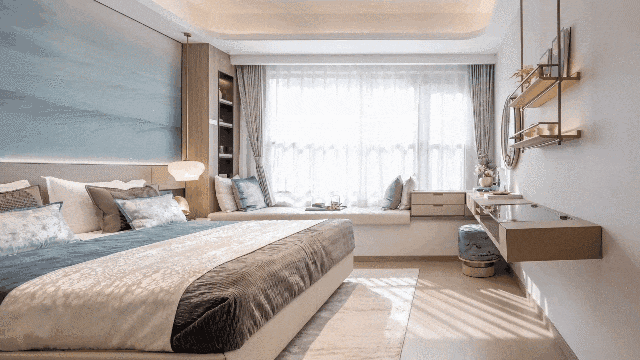 约3.65米主卧面宽,谱写理想轩阔的酒店式套房章法,搭配步入式衣帽间空间、独立卫生间,揽阅星辰的飘窗,还能装下一字柜,让男女主人都有各自的时尚秀场,满足起居、收纳、洗漱、更衣、化妆等生活需求,私享尊崇与静谧。