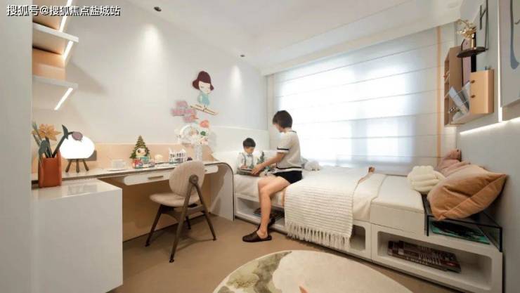 北面次卧带生活阳台,适合父母居住,一杯清茶,一张藤椅,浪漫岁月在此一一珍藏;拥享一步阳台的多功能房,尺度宽敞,可作二胎空间,也可打造成书房、电竞室、兴趣室等多元空间,进行琴棋书画的雅兴。