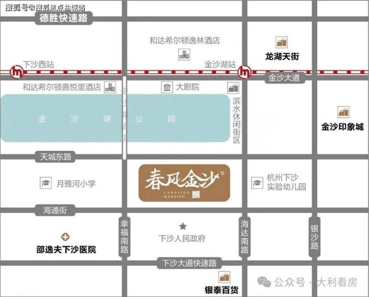【项目位置】春风金沙项目位于钱塘新区金沙湖板块CBD中央商务区核心区域,地处繁华中心,交通便利,配套成熟,金沙湖公园旁,项目位于天城东路与海达南路交汇处。