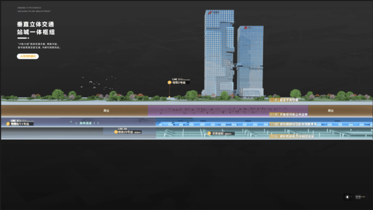 6轨6站超级枢纽,无需换乘,即可轨道直达五大出境口海陆空立体通达,链接全球,地下交通层可以直接办理值机。
