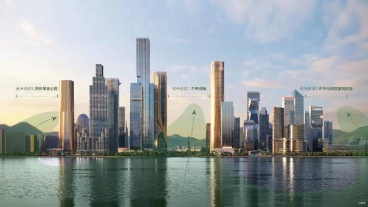 从片区规划到单体建筑方案都是由深圳政府统筹拍板,整体规划设计方案“一芯双核,十字生境”,由从全世界的76个投标中优选出来的3家结合而成。