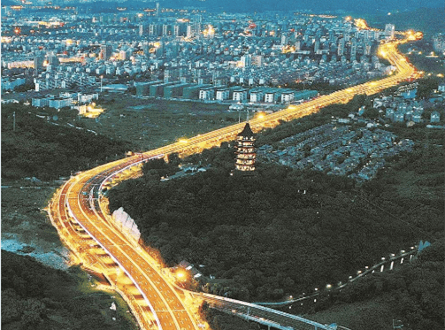 “绍兴城市中轴”——解放路与连接柯越快速路环的大禹快速路,在名爵府门前织就“十字金轴”。