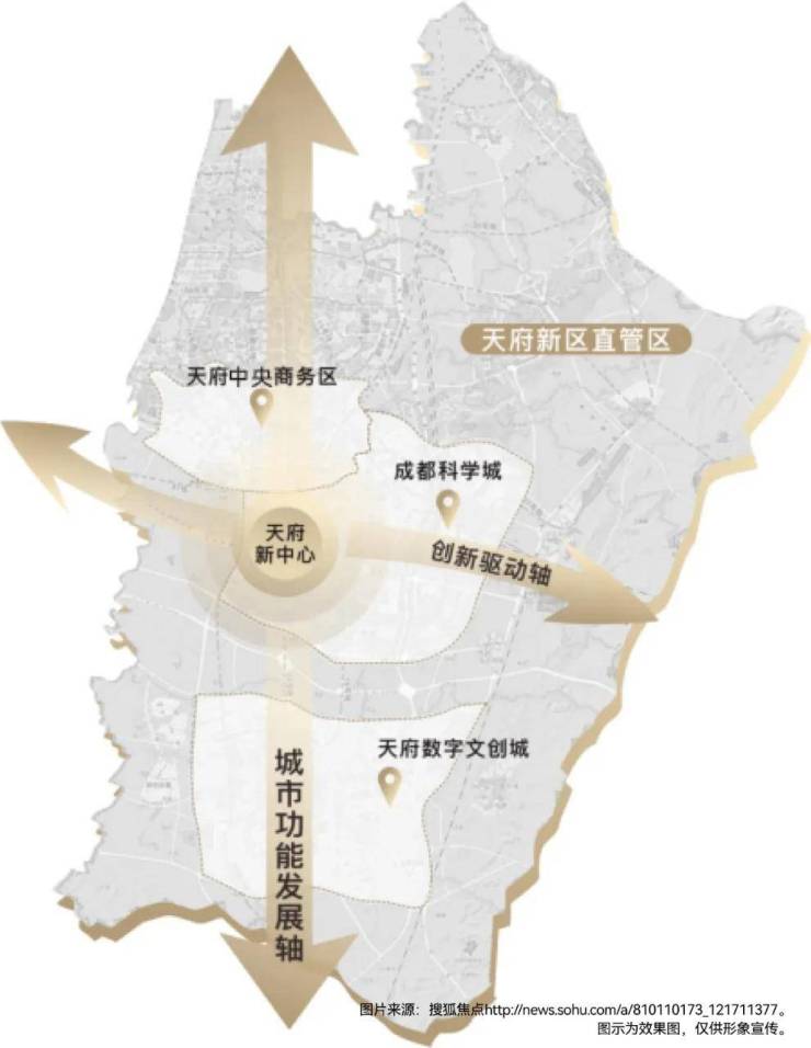 天府新区,是由国务院正式授牌的国家级新区,国家级新区高质量发展样板,新时代公园城市典范。重点打造天府中央商务区、成都科学城、天府数字文创城三大产业功能区,着力构建“成都未来城市新中心、成渝地区双城经济圈创新极核和开放门户、国家级新区高质量发展样板和中国式现代化公园城市先行区”。
