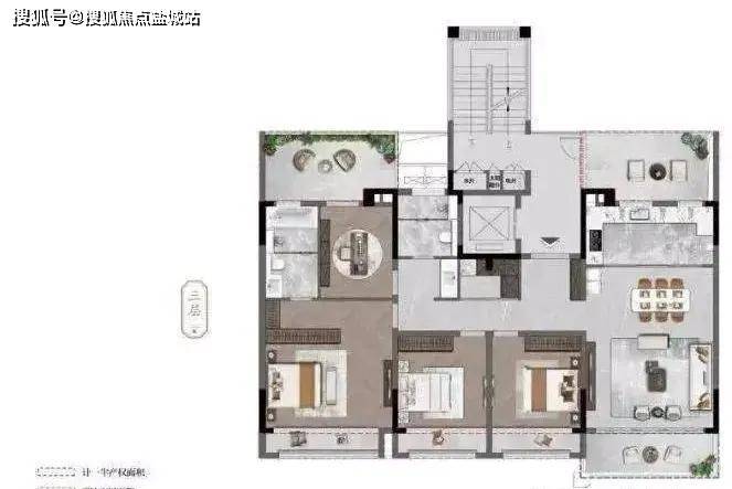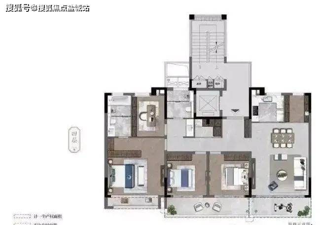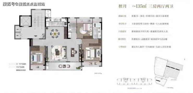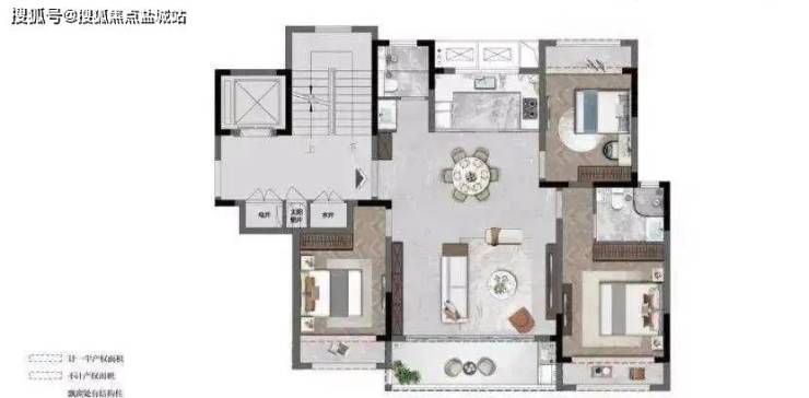这次推出的洋房建面约135㎡,三开间朝南,餐客厅可以根据需求,改造成房间或者大横厅使用。