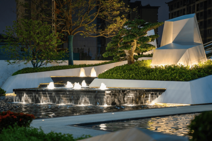 结合常州“龙城”的雅称,提取“龙”的形态、元素,从空间、品质、生态的方面,打造文化与生活与自然相互交融的美学居所。整体景观所展示的就是“龙行山涧,遨游春秋”的现代写意山水画卷,为业主提供诗意般的居住环境。约9米高山流水图,通过复刻山峦与江河的形态,用艺术景墙、罗汉松、叠水、涌泉等形成「层峦叠嶂」的立体画卷,营造「人在画中游」的沉浸式体验,尊享回家就是度假的意境。