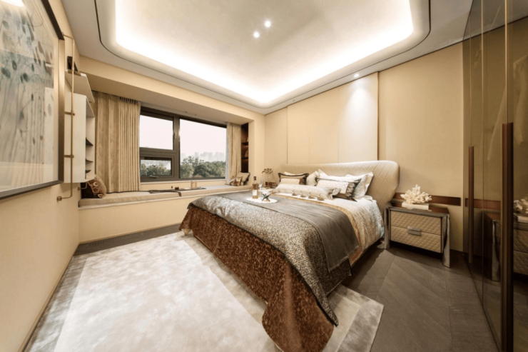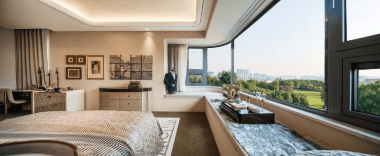 飘窗:部分大户型主卧套房打造270°转角飘窗,以全景视野融汇自然光景,将昼夜晨昏、四季流转温柔纳入私域。