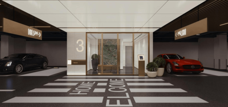 地下车库以星级酒店式入户大堂为标准精装呈现。顶部透光云石铺陈为柔和的光厅,智能系统实现无感通行,以奢石背景墙,勾勒静谧归心之境。