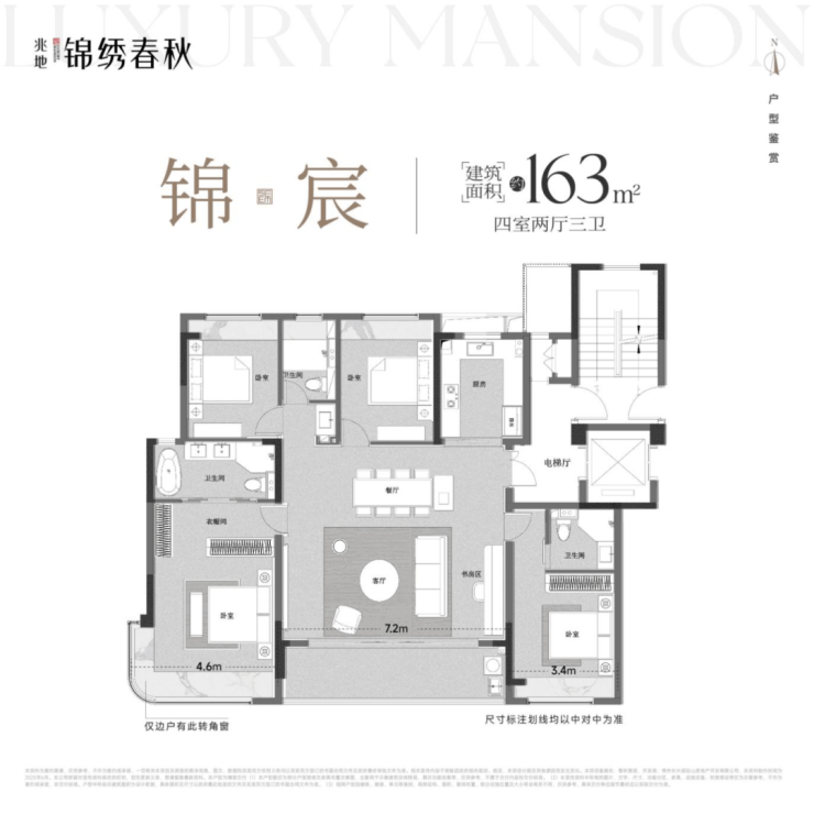 宽厅:建面约138㎡户型即拥有约5.6米开阔厅堂,以超越面积尺度的格局气度,彰显从容待客与家庭聚会的优雅场景