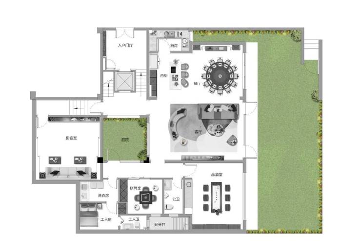 【百变空间】专属会客空间,多功能红酒雪茄吧、棋牌室、影音室等丰富社交功能;