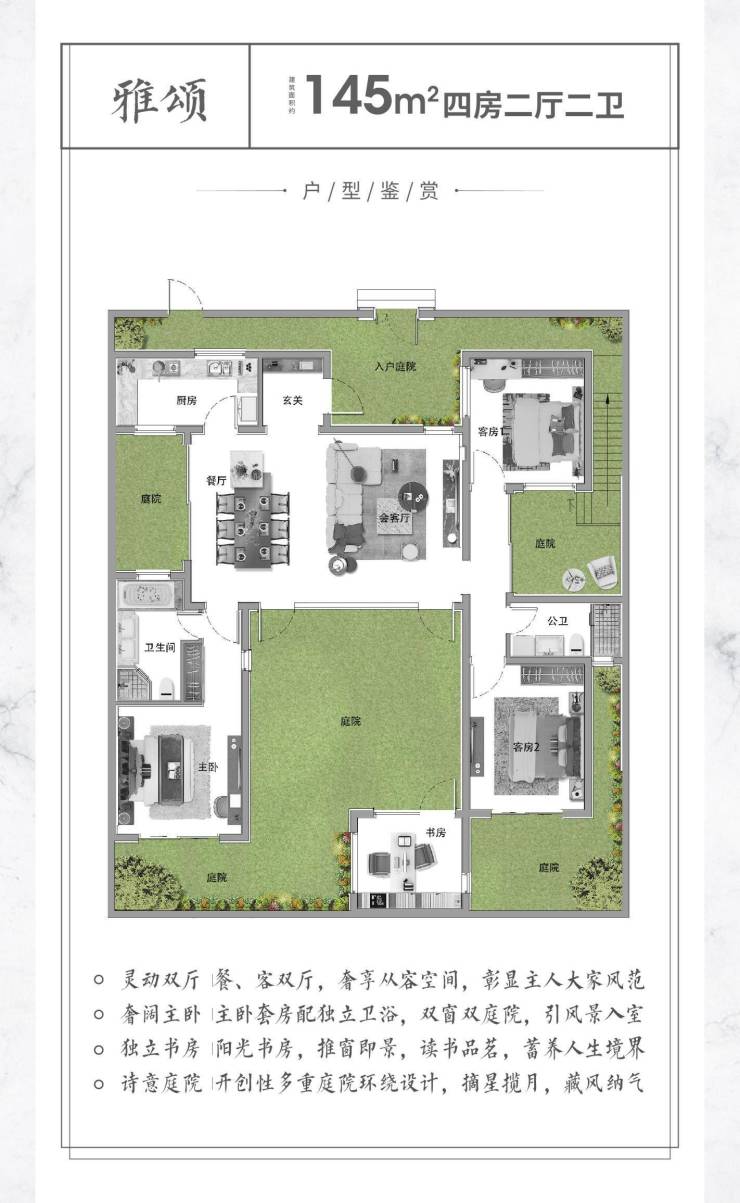 【诗意庭院】开创性多重庭院环绕设计,摘星揽月,藏风纳气。