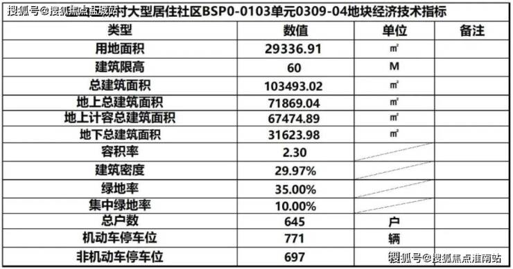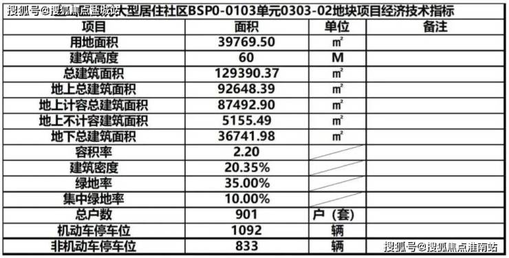 具体经济技术指标如下: