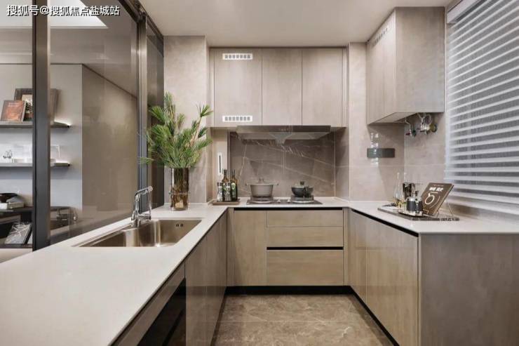 厨房为U字型,半开放式厨房,采光更好的同时,还能够同时满足中餐爆炒、西餐轻食,更适合新一代年轻人对厨房的要求;岛台和水槽相结合,则可以增加家人之间的沟通和互动。还有一个大横跨阳台,直接放在了餐客厅交互的视野。既能满足清洗、晾晒,又能兼顾休闲。