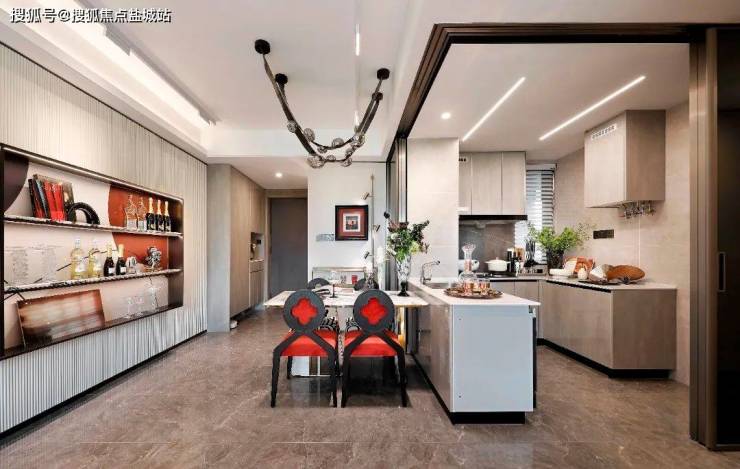 油烟重时,可以拉上移门,充分隔离油烟。即使在做饭,家人之间也能通过与餐厅相连的岛台、可拉伸的玻璃移门,彼此看见、彼此照应。更不用说将水槽安置在岛台的创新设计,家长做饭的时候,孩子也能在一侧洗菜帮厨。美食与爱,都在细节感满满的厨房里涌动。