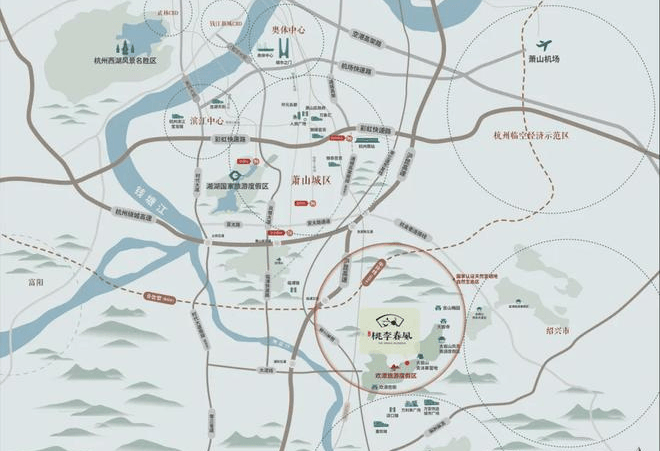 萧山蓝城桃李春风位于被誉为“杭州南花园”“萧绍桥头堡”的钱江南岸,择址于风景秀丽的进化镇大岩山景区内。这里毗邻“江南小宏村”古韵欢潭3A级旅游度假区,自然环境优越,山水相依,为居者提供了一个低密生态的宜居环境。同时,项目交通便利,咫尺沪昆、绍诸高速,经风情大道、时代高架,可快速抵达萧山主城、滨江核心、钱江新城和西湖等区域,真正实现繁华与宁静的随心切换。
