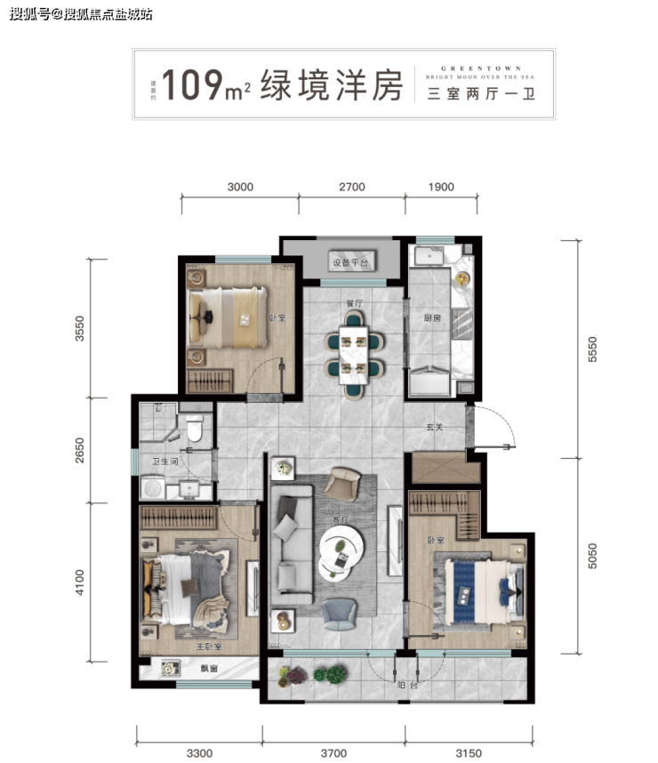 【奢阔三室】类“四叶草”布局,南北通透,全明户型,彰显名门风范