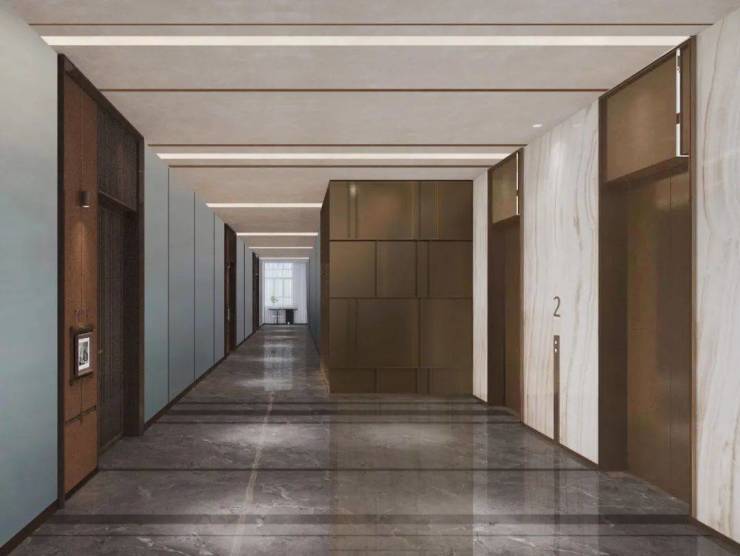 ▲朗阔公区艺术人文走廊配置中央空调,墙面装饰材料为高档艺术墙布,电梯厅装饰材料为高档天然大理石和质感金属,流动的艺术人文走廊,中央空调全覆盖,四季恒温。