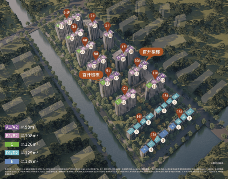 •首开户型:98㎡三室两厅、108㎡三室两厅、126㎡四室两厅,共计118套
