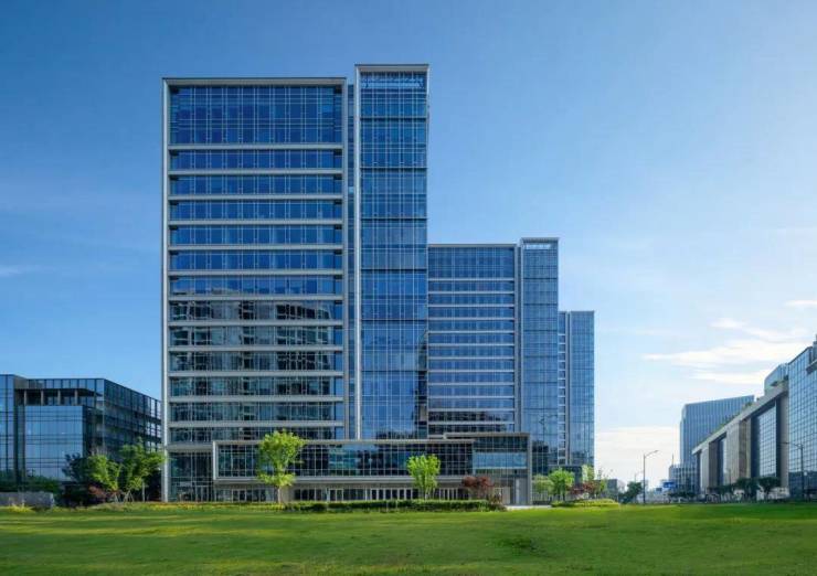 园区遵循现代设计理念,充分考虑美学和节能需求,采用单元式铝合金玻璃幕墙,构建出高品质的商务外观。