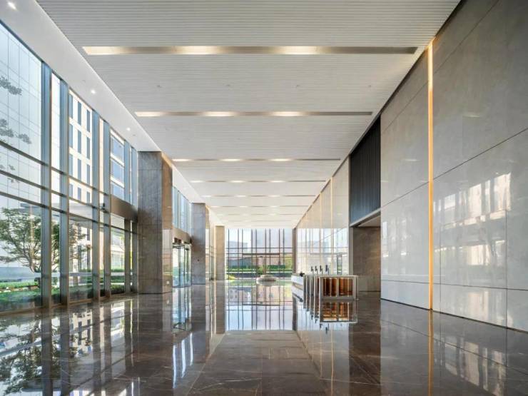 中空LOW-E钢化玻璃的应用,实现了室内外空间的和谐交融,营造出宁静、灵动且温馨的氛围。其出色的隔热性能,能够有效减少室内热量的流失,阻挡外部热量的侵入,维持室内温度的稳定,为企业员工提供舒适宜人的办公体验。