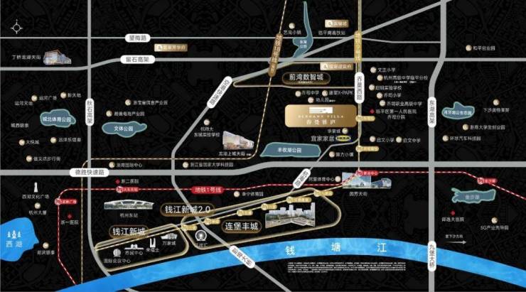项目直线距离地铁9号线乔司站约500米,相比起板块内赞成汀南学仕府、绿城汀桂里等其他项目,它算是距离地铁站比较近的。乘坐4站地铁即可抵达热门板块钱二,再8站即是江河汇和顶流红盘IFC,换句话说,它是目前距钱二最近的“城市低密墅区”之一。