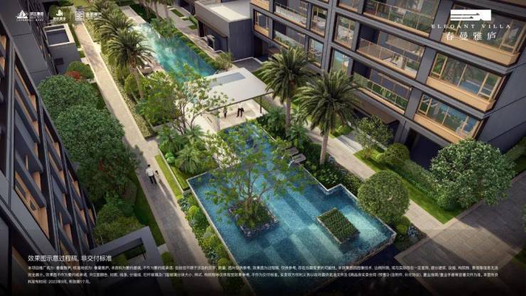 极具特色东南亚度假风格的园林景观,规划为三进、五巷、九境,入口处映入眼帘的流水景墙、漂浮树池和不规则无边水景,步入园区的艺术花园、社交花园,主景观区长约60米的湛蓝色无边水景,两边搭配高大的棕榈树、朱蕉、橡皮树以及东南亚小灌木、小乔木等,仿佛将东南亚度假风景复刻到了园区之中,下楼就是度假,归家如同旅行。