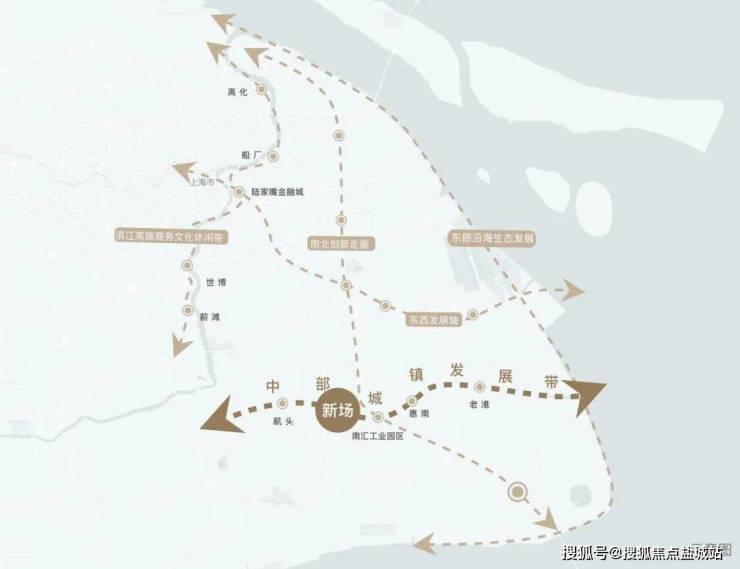 新场板块处于贯穿浦东南北的创新产业密集带,同时还位于东西延伸的中城发展带上,是“十字”黄金腰带交汇处。