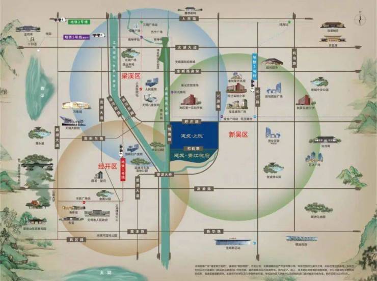 项目步行距离即达生态公园(规划中)、新吴实验中学、宝龙城市广场等,驱车可达南长街、海岸城、太湖广场等繁华商圈,三公里可享生活、健康、文体全配套。项目更紧邻大运河,尽享丰富的生态资源。