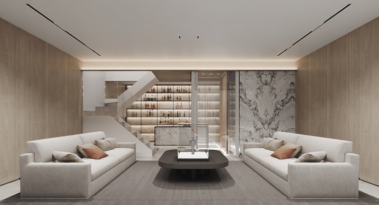 •功能性层层分布,一家人一起居住的同时又能保证私密性,地下室及客厅满足会客,卧室满足绝对私密。